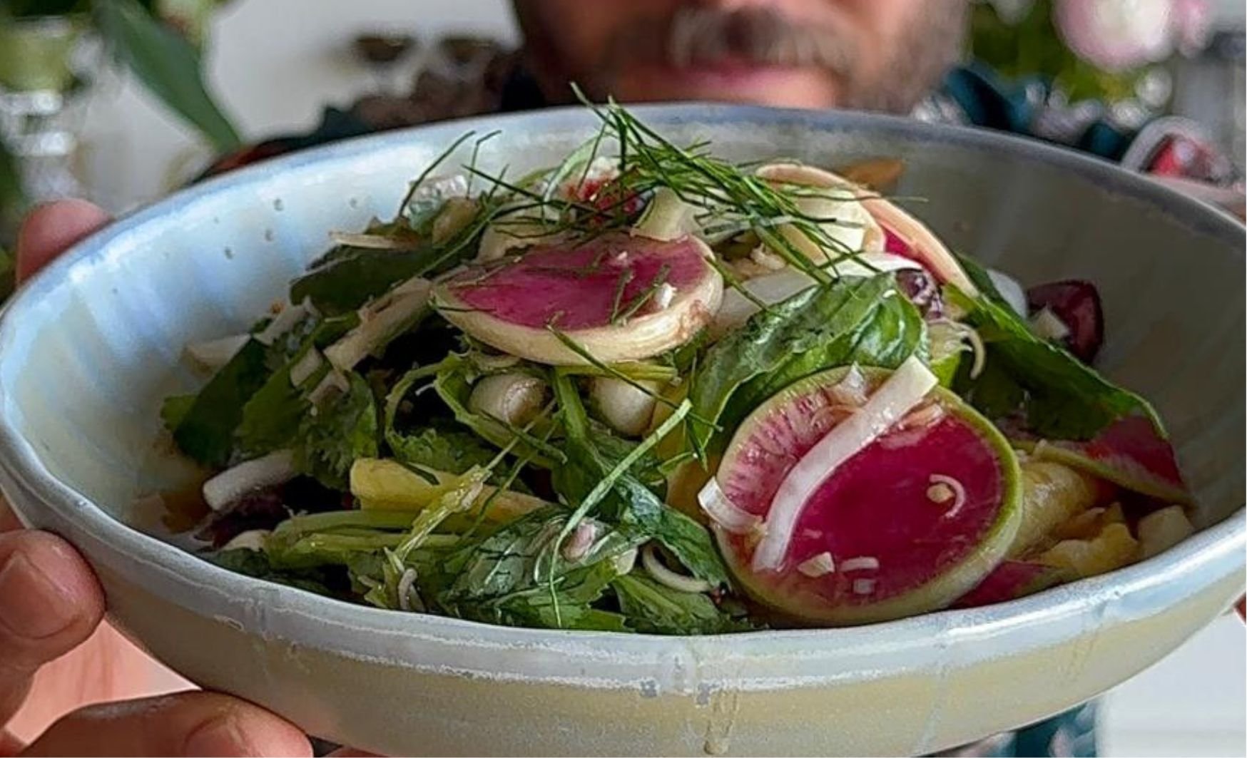 זו גרסה חקלאית ישראלית-אסייתית של המאסטר נדב גלר, שמכבדת את המקור אבל מתאהבת בירקות של העונה: צנון אבטיח ורוד ועסיסי, דייקון פריך, גזרים צבעוניים, פיצולפת ופיצנונית עם העלים – כאלה שמגיעים ישר מהאדמה, עדיין עם אופי.