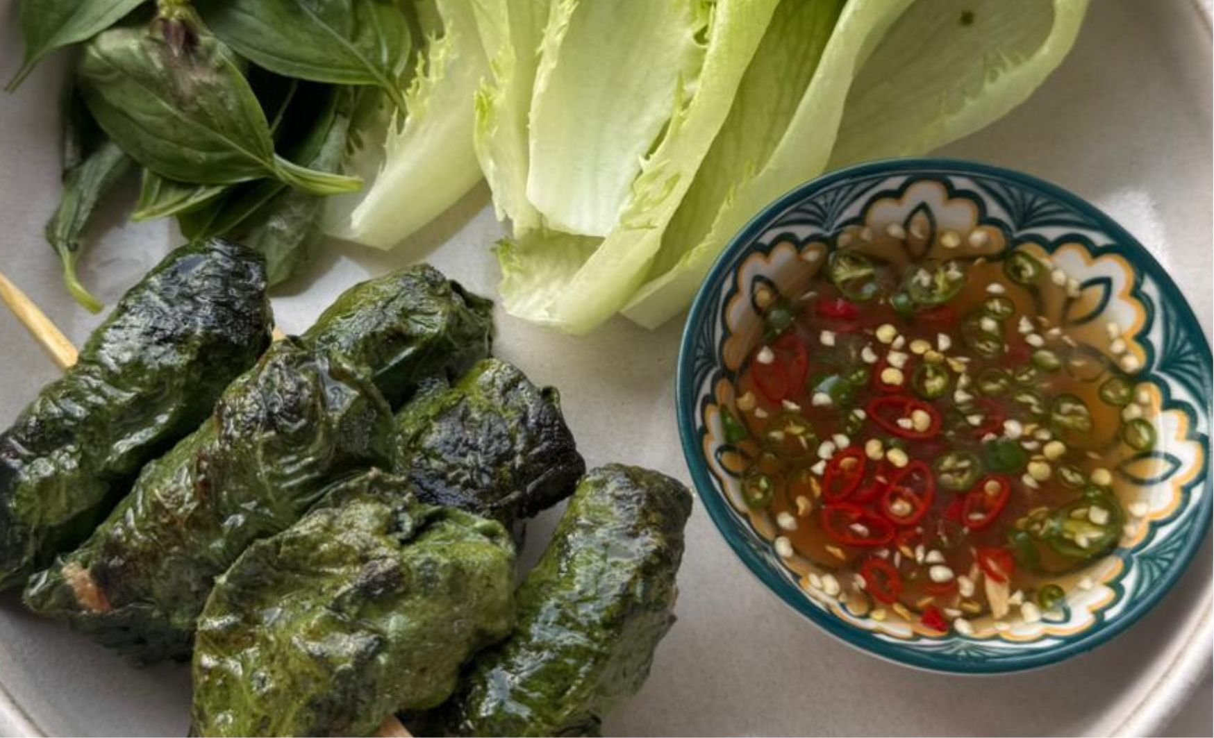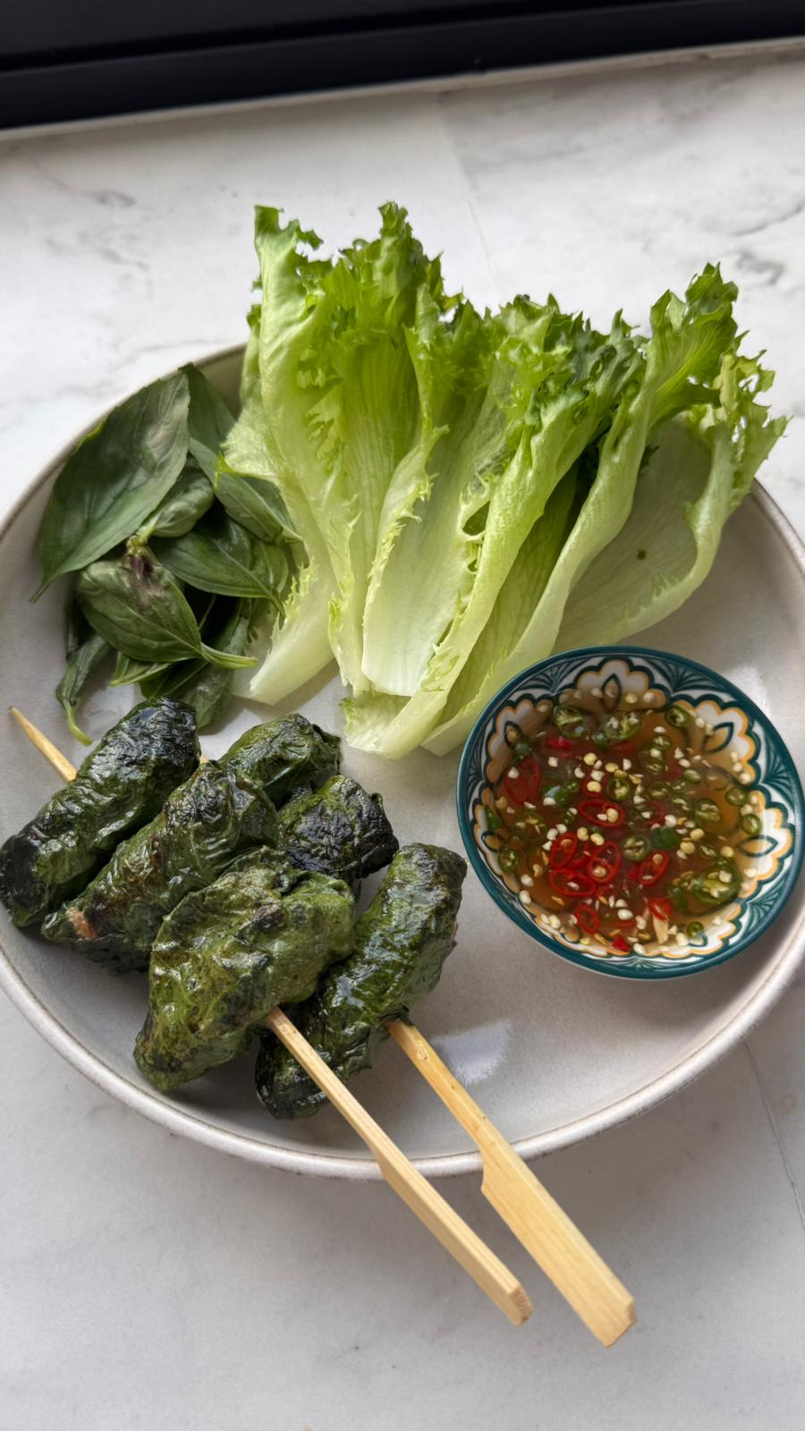 עלי חובזה ממולאים בבשר, כורכום טרי ולמונגראס.